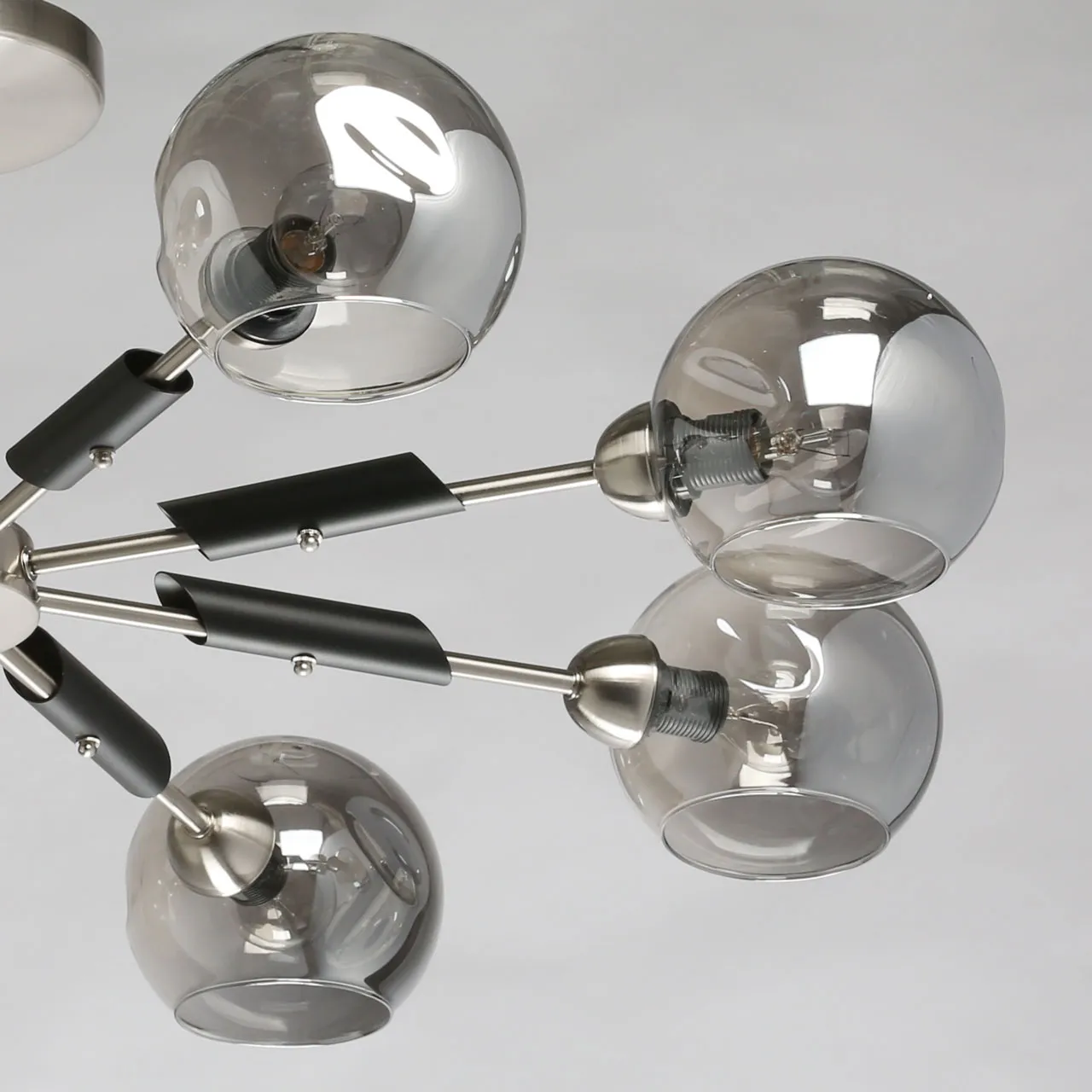 Основание/ металл/ матовый хром, черный цвет Плафоны/ стекло/ дымчатый