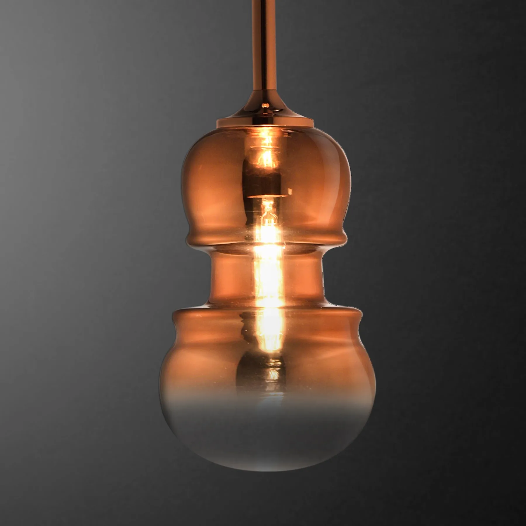 Эта коллекция подвесных светильников находится под влиянием формы песочных часов виолончели, выдутых из полупрозрачного стекла с элегантными оттенками меди, бронзы или серого графита. Доступные в трех размерах, они является подходящим вариантом для того, чтобы привнести безмятежность классической музыки в пространство гостиной или столовой, создавая атмосферу приватности и уюта.